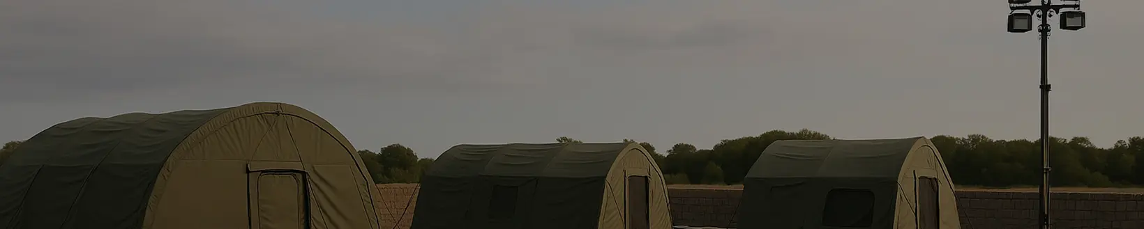 Deployable Infrastructure supports sustained operations in remote, austere, or rapidly changing environments. Our range includes modular military accommodation, ablution blocks, CBRN shelters, fuel tanks and pumps, water purification systems, field lighting, power generation and storage, and durable flooring and matting. We also supply purpose-built military furniture and integrated force protection systems. Designed for quick deployment and ease of transport, our equipment enables rapid establishment of secure, functional operating bases for Defence.