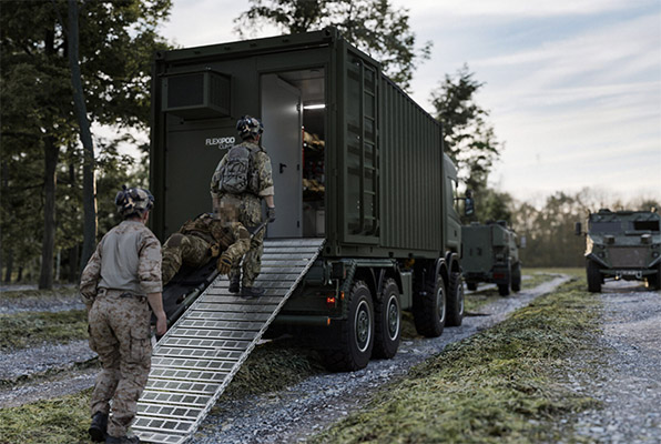 - Protected care: ballistic protection (STANAG 2920; extended options to STANAG 4569), enhanced counter‑drone features, low IR/EMS options and CBRN/COLPRO‑compliant positive‑pressure ventilation.