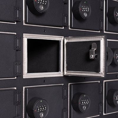 The locker is configured with 24 individually shielded compartments: