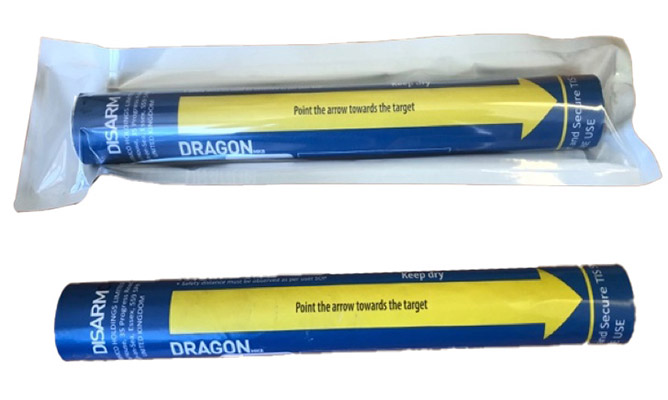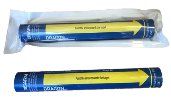 Dragon Lance is a plug‑and‑go thermite lance for stand‑off defeat of thin‑skinned steel and plastic‑cased ordnance, particularly “no‑touch” items. The system comprises a pre‑loaded lance and a TIS starter that is electrically initiated via standard firing cable/shot exploder, simplifying deployment where explosives access is restricted.