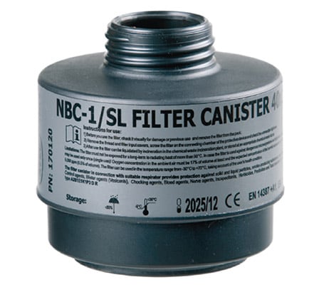 NBC‑1/SL delivers multi‑threat gas/vapour and particle protection in a compact canister designed for half‑mask and full‑face mask users who need capability without bulk. (Per the spec card you provided.)